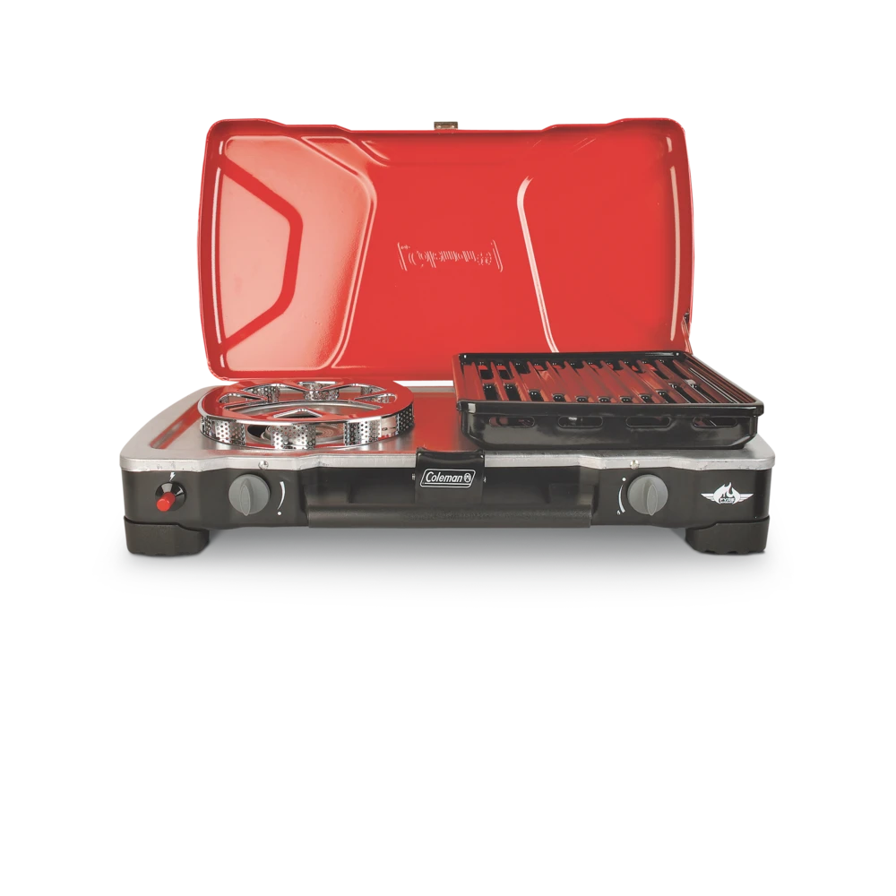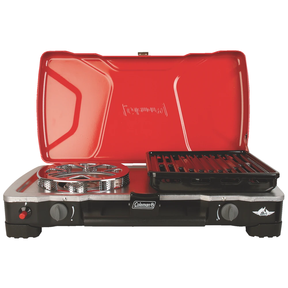 - Coleman FyreSergeant 2-Burner Grill Stove can operate as full size grill, grill/stove or 2 burner stove